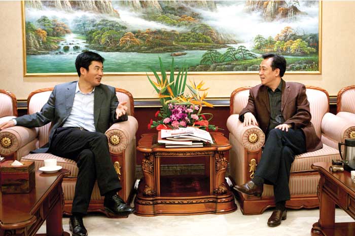 恒大集團(tuán)董事局主席許家印教授與黑龍江省齊齊哈爾市委書記韓冬炎(左)親切交談