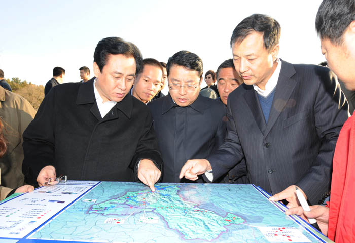 黑龍江副省長孫堯(前排右一)、牡丹江市委書記張晶川(前排中間)陪同許家印教授實地考察