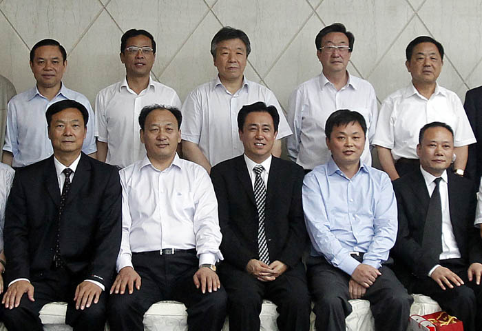盧展工書記(后排居中)、郭庚茂省長(后排右二)與許家印教授(前排居中)等豫商代表合影留念