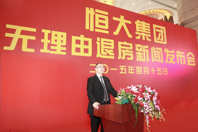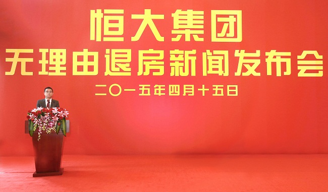 4月15日,恒大集團在廣州總部舉行無理由退房新聞發(fā)布會,宣布自4月16日8時起正式實施“無理由退房”,覆蓋恒大在全國范圍內(nèi)的所有樓盤住宅。