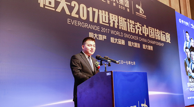 世界職業(yè)斯諾克協(xié)會主席福澤盛在恒大2017中錦賽啟動儀式上致辭