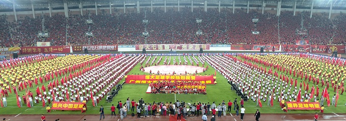 奪冠當(dāng)晚,天河體育中心還舉行了隆重的奪冠慶典。恒大足球?qū)W校兩千多名學(xué)生表演了團(tuán)體操《崛起》,并送上“虎狼之隊(duì)”對(duì)抗賽。對(duì)陣雙方均來自恒大足校U14(2003年齡段)梯隊(duì),已獲得7個(gè)全國(guó)冠軍、2個(gè)全國(guó)亞軍。創(chuàng)辦5年多來,足校已累計(jì)有162人次入選國(guó)青、國(guó)少隊(duì)。