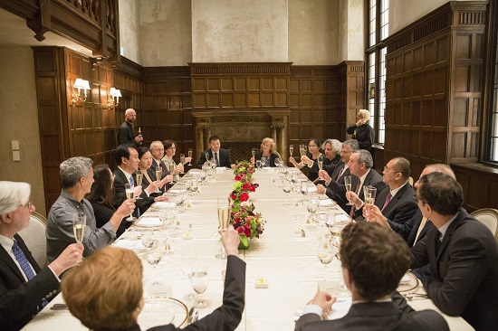 會談結(jié)束后,Lawrence S.Bacow校長全程陪同參觀了哈佛校園和美國第六大藝術(shù)館哈佛藝術(shù)博物館,并于當(dāng)晚特意在博物館隆重宴請了許家印一行。恒大集團董事局副主席、總裁夏海鈞,副總裁陳敏、史俊平,以及哈佛大學(xué)常務(wù)副校長Alan M. Garber,哈佛大學(xué)校長助理Peggy Newel、Mary Beth Pearlberg,哈佛醫(yī)學(xué)院院長George Q.Daley,設(shè)計學(xué)院院長Mohsen Mostafavi,基礎(chǔ)科學(xué)與研究學(xué)院院長David E.Golan,恒大免疫疾病中心聯(lián)席院長Vijay Kuchroo、Arlene Sharpe,綠色建筑與城市中心主任Ali Malkawi等14位哈佛大學(xué)領(lǐng)導(dǎo)班子和相關(guān)院系負(fù)責(zé)人出席活動。