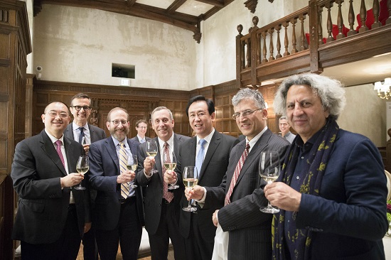 恒大集團董事局主席許家印、總裁夏海鈞在歡迎晚宴上與哈佛校長、常務(wù)副校長、設(shè)計學(xué)院院長、免疫疾病中心聯(lián)席院長合影