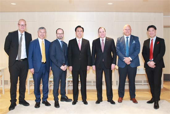 瑞典首相斯特凡·勒文(右三)見證簽約并合影留念