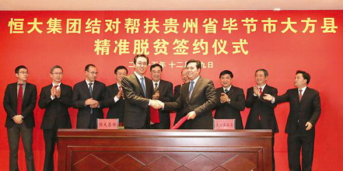 2015年12月,恒大幫扶大方精準(zhǔn)脫貧簽約儀式現(xiàn)場