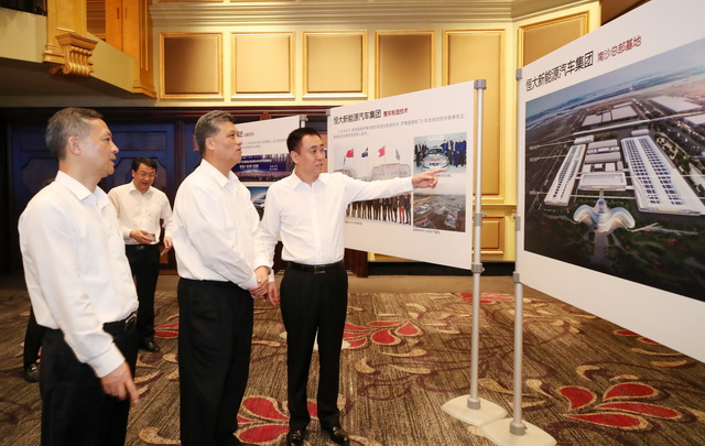 許家印向馬興瑞省長(zhǎng)和張碩輔書(shū)記介紹恒大新能源汽車(chē)情況
