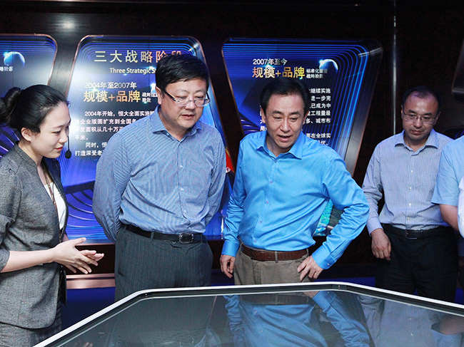 清華校長陳吉寧(左二)一行參觀恒大展示中心