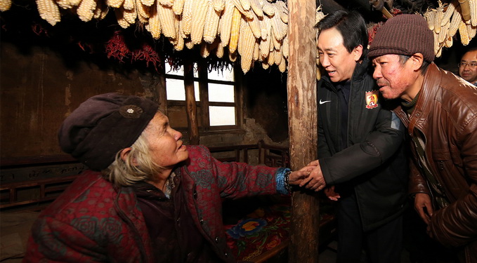 簽約前一天,項宗西、許家印、劉遠坤一行走訪了大方縣各個鄉(xiāng)村多家貧困戶,并實地考察易地搬遷、援建學校等項目選址。在考察簽約期間,恒大還組織了60輛大貨柜車車隊,為該縣的28萬戶110萬老百姓,每一戶都送去了食用油等慰問品。