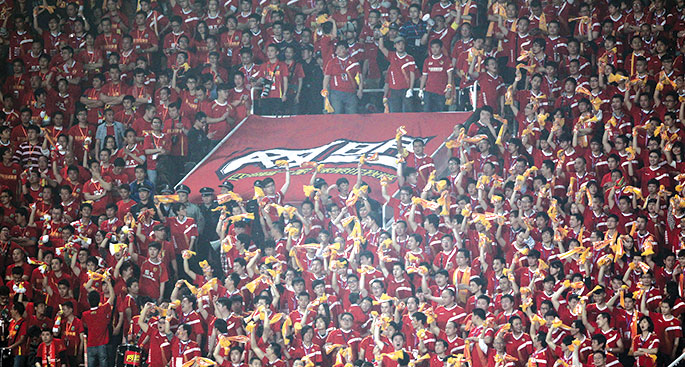 球迷激昂高呼為廣州恒大隊(duì)加油鼓勁