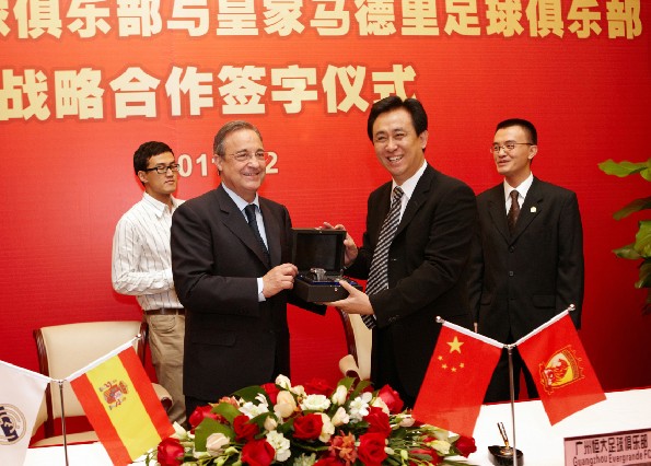 8月2日,恒大集團(tuán)董事局主席許家印教授在廣州恒大酒店會(huì)晤了來(lái)訪的皇馬主席弗洛倫蒂諾一行。期間,雙方在戰(zhàn)略合作上達(dá)成共識(shí)并共同出席戰(zhàn)略合作簽字儀式,廣州恒大足球俱樂(lè)部與皇家馬德里足球俱樂(lè)部將在青訓(xùn)、商業(yè)比賽、球員引進(jìn)及培養(yǎng)等多方面展開(kāi)全面合作。