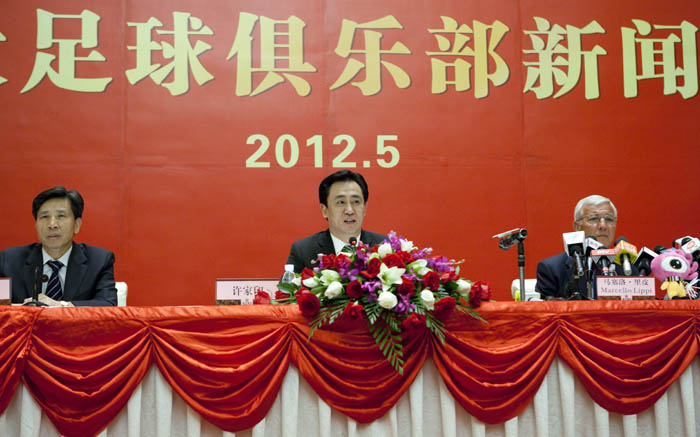 5月17日,廣州恒大足球俱樂部在廣州恒大酒店舉行新聞發(fā)布會,正式宣布享譽國際并曾率隊奪得過意甲聯(lián)賽冠軍、歐冠冠軍、世界杯冠軍的世界著名教練里皮,與廣州恒大簽訂為期兩年六個月的合約,即日起正式擔(dān)任廣州恒大足球隊主教練。至此,中國足球迎來了歷史上實力最強的主教練。恒大集團(tuán)董事局主席許家印、廣州市體育局孔茂勝副局長、廣州恒大足球俱樂部劉永灼董事長、剛從意大利來到中國的馬塞洛·里皮以及球迷和來自全球的200多名記者出席了新聞發(fā)布會。