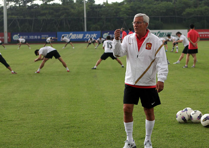 廣州恒大隊主教練里皮冒雨指揮首訓(xùn)