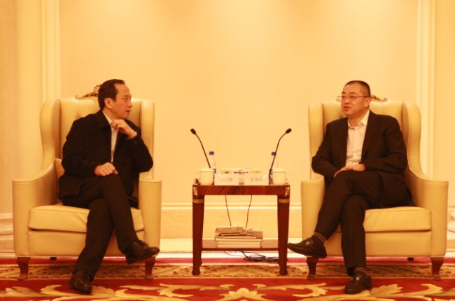 夏海鈞總裁與張家界市委副書記、市長(zhǎng)許顯輝(左)親切交流