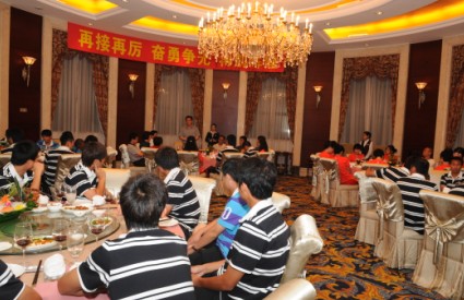 ??????? 隨后在25日晚上,集團董事局主席許家印教授組織恒大足球俱樂部和排球俱樂部召開座談會,在肯定俱樂部現(xiàn)有成績的同時,對于俱樂部的建設(shè)提出了更高的希望。廣州市體育局劉江南局長、廖小明副巡視員和足球管理中心謝志光主任也出席了座談會。