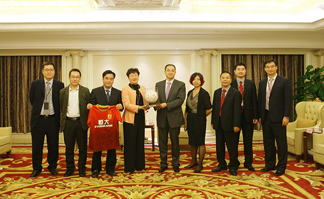 會談后,夏海鈞總裁代表恒大集團向大連大商集團贈送了簽名足球與球衣;隨后,王志敏總裁一行還參觀了世界頂級、中國第一的恒大集團展示中心。