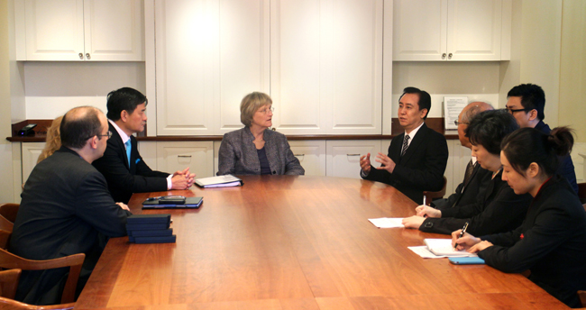哈佛大學(xué)副校長(zhǎng)艾倫·嘉伯(中)代表校方宴請(qǐng)恒大客人