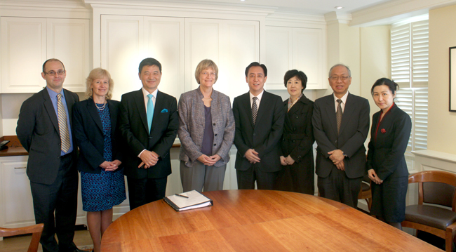 ?據(jù)新華網(wǎng)報(bào)道,美國(guó)當(dāng)?shù)貢r(shí)間10月8日上午10點(diǎn)半,哈佛校長(zhǎng)凱瑟琳·德魯·吉爾平·福斯特(Catharine Drew Gilpin Faust)女士在哈佛大學(xué)馬薩諸塞大廳會(huì)見了來(lái)訪的恒大集團(tuán)董事局主席許家印教授一行,雙方進(jìn)行了深入交流與會(huì)談。