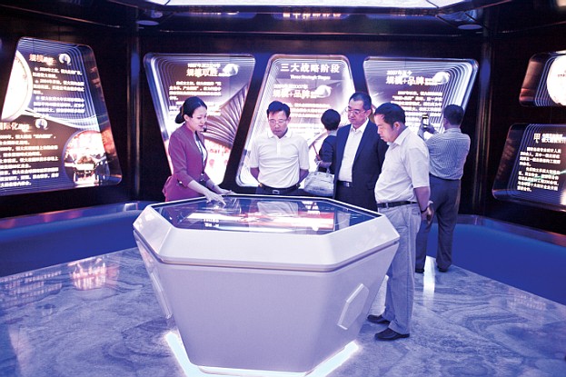 考察期間,在集團董事局副主席、總裁夏海鈞博士的陪同下,梁穩(wěn)根一行參觀了世界頂級、中國第一的恒大集團展示中心。據(jù)悉,恒大展示中心是由美國航天館、通用汽車館、上海世博會美國館、可口可樂館的設計公司和好萊塢頂級團隊共同打造,是代表全球最高規(guī)格、最高水平及最高科技的企業(yè)展館。梁穩(wěn)根一行在參觀了“恒大在中國”和“精品之旅”等展區(qū)之后,對展廳的精彩內(nèi)容及展示技術印象深刻,并當場表示了高度的贊許。