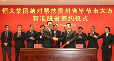 恒大集團積極響應黨中央號召,在全國政協(xié)鼓勵支持下,從2015年12月開始結(jié)對幫扶貴州省畢節(jié)市,無償投入110億,選派2108人的專職扶貧團隊常駐烏蒙山區(qū)達五年之久,到2020年底已助力畢節(jié)所有貧困縣全部摘帽,100多萬貧困人口全部脫貧。