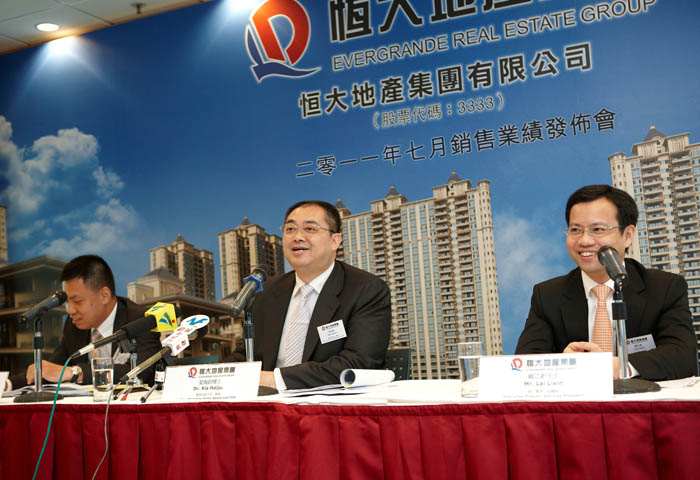 8月9日,恒大在港發(fā)布7月銷售業(yè)績,當(dāng)月實(shí)現(xiàn)銷售額達(dá)86.8億元,銷售面積137.6萬平方米;前七月累計(jì)銷售額為510億元,已經(jīng)超過2010年全年的504億元,完成2011年全年合約銷售目標(biāo)的72.9%。在當(dāng)天的業(yè)績發(fā)布會(huì)上,集團(tuán)董事局副主席兼總裁夏海鈞博士、財(cái)務(wù)總監(jiān)兼執(zhí)行董事謝惠華先生、副總裁兼執(zhí)行董事賴立新先生出席活動(dòng),并與記者進(jìn)行互動(dòng)交流。