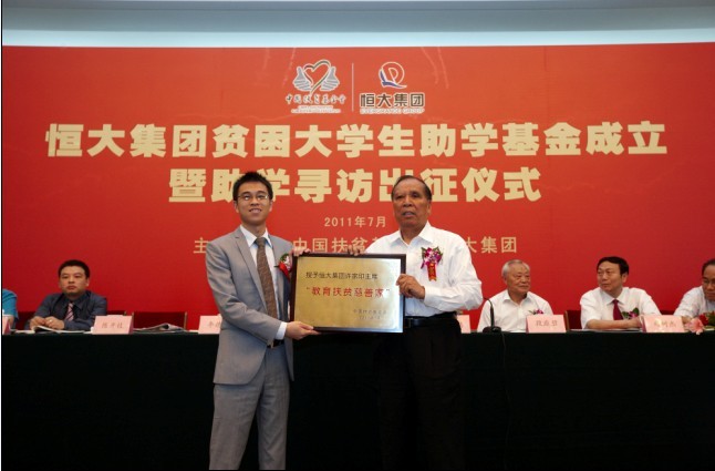 恒大集團(tuán)董事局主席許家印教授被授予“教育扶貧慈善家”稱號(hào),
