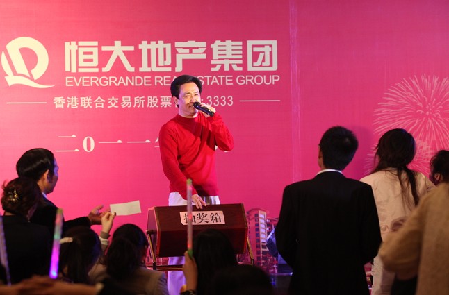 董事局主席許家印教授在聯(lián)歡晚會(huì)現(xiàn)場(chǎng)抽獎(jiǎng)