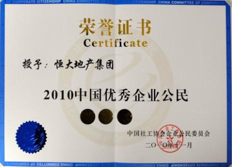 恒大榮獲“2010第六屆中國優(yōu)秀企業(yè)公民”