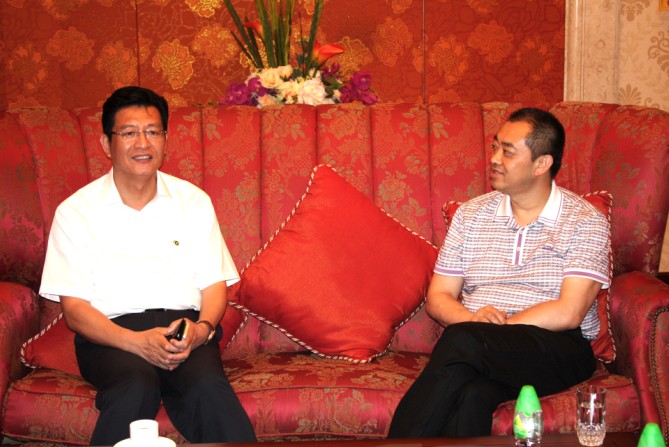 恒大集團(tuán)董事局副主席、總裁夏海鈞博士與柳州市委書記鄭俊康(左)親切交談